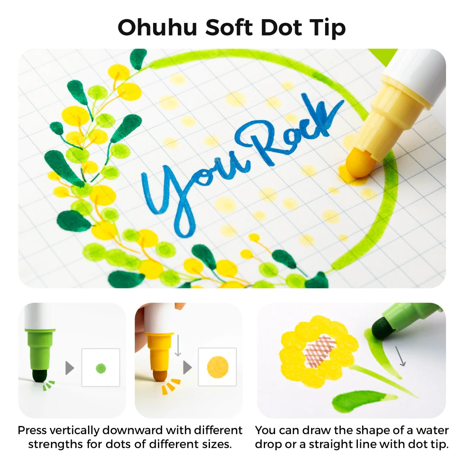 - Versatile Dual-Tip Functionality: Transition effortlessly between a flexible brush tip for sweeping calligraphy strokes and a specialized dot tip for perfectly uniform circular accents and patterns.