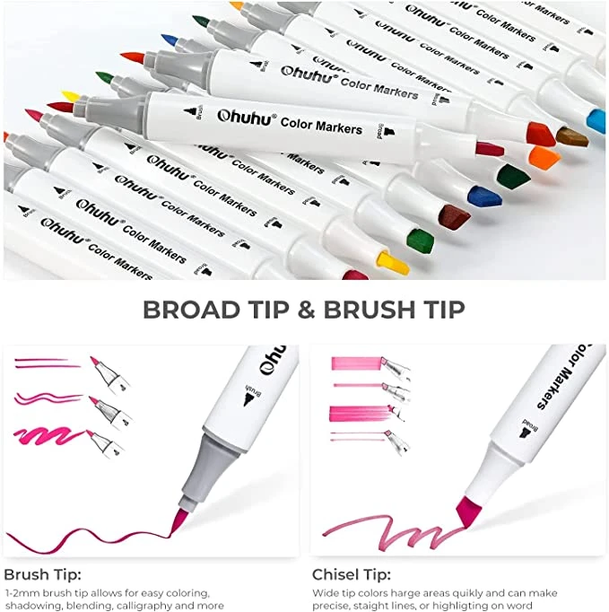 Experience the professional quality of Ohuhu with these Dual Tip Water-Based Art Markers, designed to bring your creative visions to life with stunning clarity and rich color. Whether you are a professional illustrator or a passionate hobbyist, these markers provide the versatility and control needed for everything from fine detailing to broad, sweeping strokes.