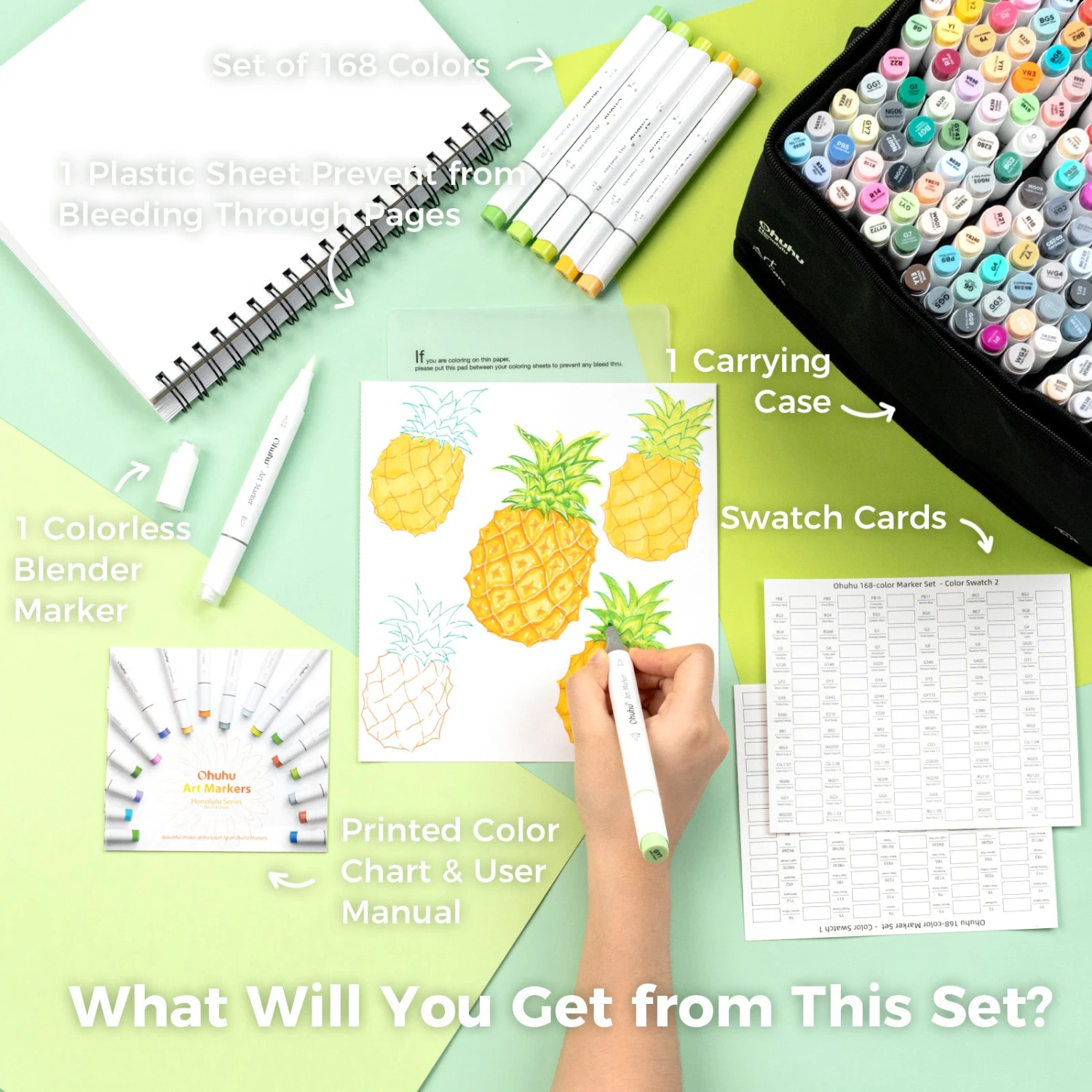 - Total Markers: 168 Colors + 1 Colorless Blender