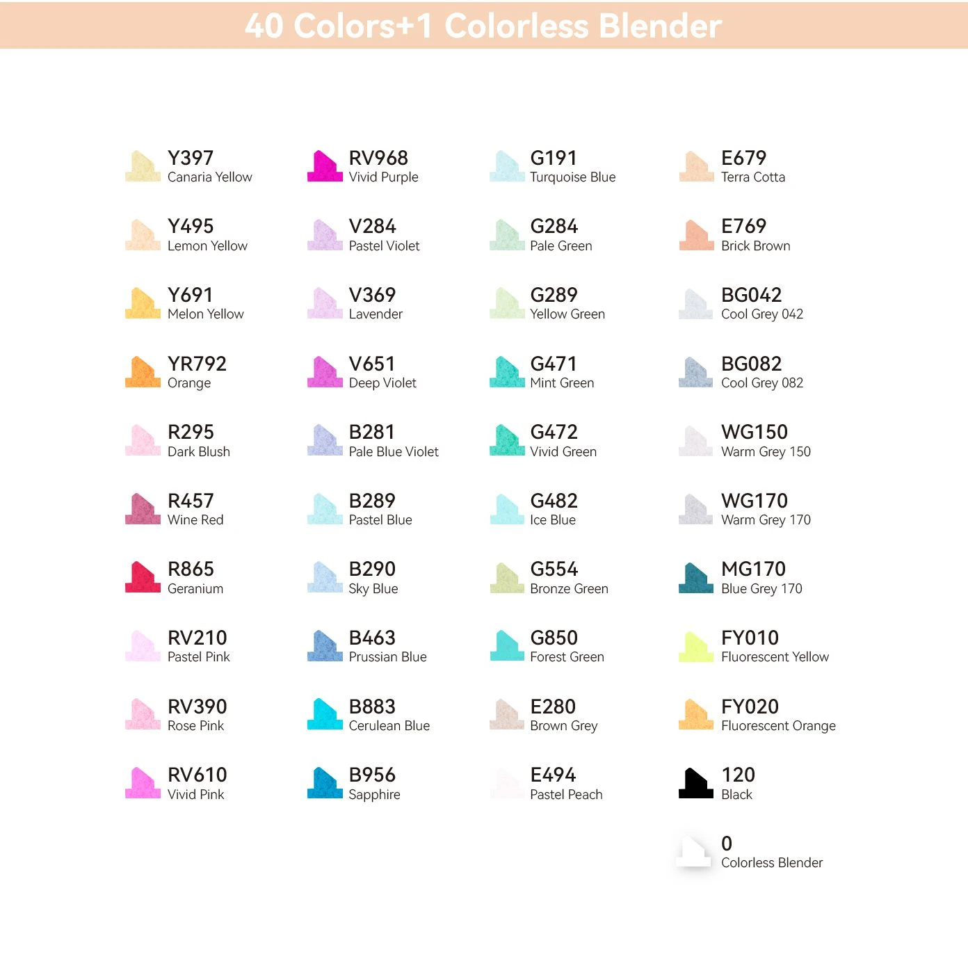 - Quantity: 40 Colors + 1 Colorless Blender